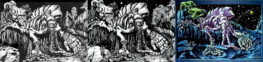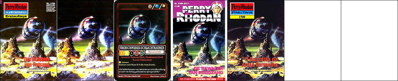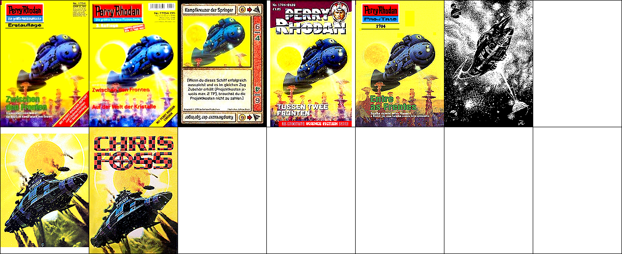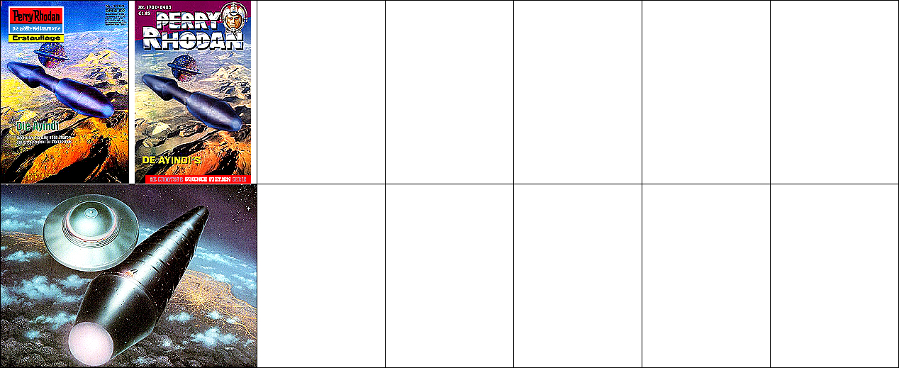 1 - 5 gleiches Bild, die Bildkomposition ist eindeutige von 8 bzw. 9 nachgezeichnet, aber das Raumschiff verändert, das Raumschiff in 6 ist ein eindeutiger Clon von 8 |