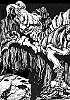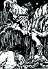 Außerirdischer mit Riesenmaul mit extrem vielen Zähnen hält Terraner in der Hand, siehe auch