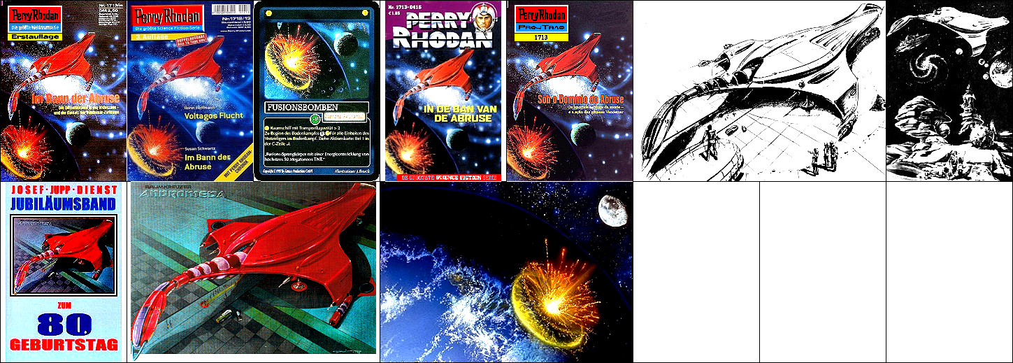 Raumschiff gleich, 1 - 5 gleiches Bild, 3 Ausschnitt, 8 bzw. 9 Vorbild für Raumschiff, das kosmische Ereignis ist von 10 entnommen |