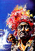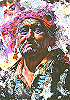 Köpfe von zwei alten Männern mit um den Kopf gebundenen Tüchern, dahinter Explosionswolke |