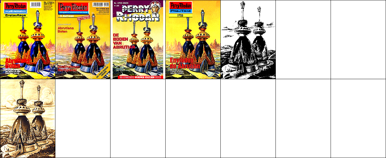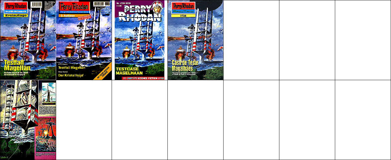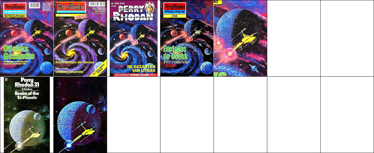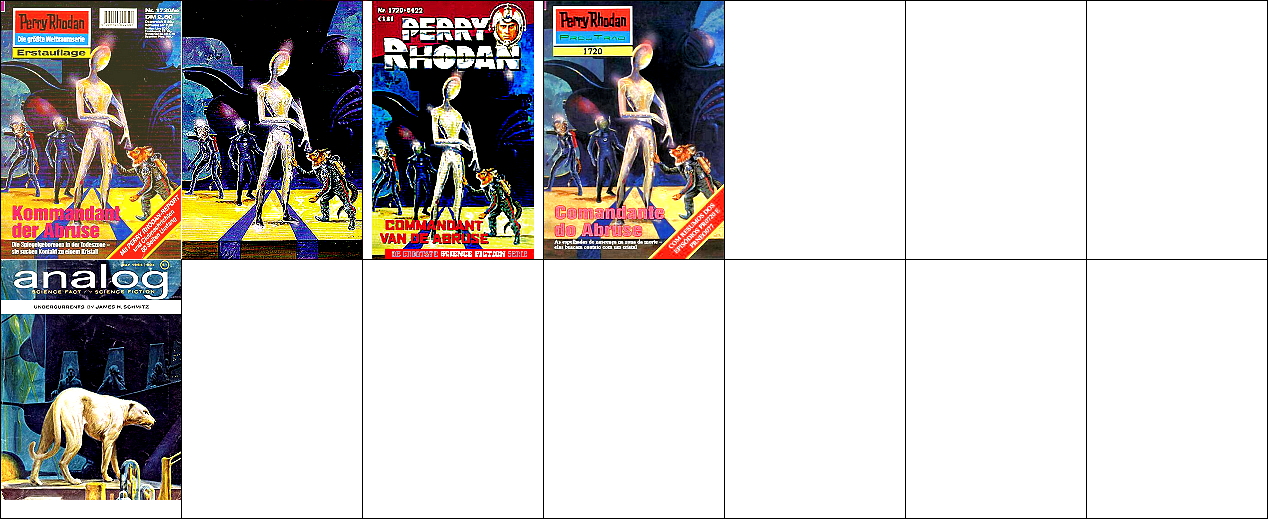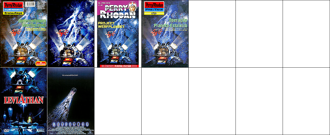 1 - 4 gleiches Bild, von 8 ist der Taucher entnommen und sein Kopf durch den von Gucky ersetzt, man beachte auch die Scheinwerferstrahlen, 9 dürfte ebenfalls einen Teil des Motivhintergrunds geliefert haben, die Vorlagen stammen aus dem Film "Leviathan" |
