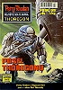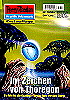 Terraner vor Maschinenwand und eiförmigem Roboter, von dem aus Öffnungen aderartige Röhren weg- gehen |