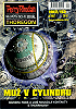 Walzenraumschiff über Stadt, davor Kegelroboter |