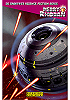 scheibenförmiges Raumschiff schießt aus Polgeschütz auf Asteroiden
