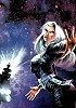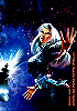 Frau zielt mit Handwaffe auf Spinnenwesen