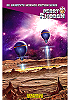 tropfenförmige Raumschiffe fliegen aus kreisrunder Öffnung im Mondkrater |