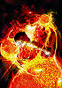 Walzenraumschiff und Stachelraumschiff vor Sonne