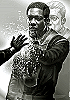 Dunkelhäutiger Mann hockt vor Eiskristallen, die zusammenbrechen |