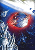 Brennendes Kugelraumschiff und Fragmentraumer |