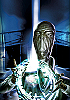 Außerirdischer hält mit spitzen Fingern Artefakt