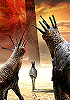 Außerirdische, die eine giraffenartige Körperstruktur und einen schneckenähnlichen Kopf haben |