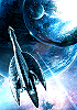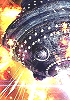 Kugelraumschiff, das an mehreren Stellen brennt |