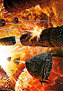 wurmlochartige Struktur, aus der ein Brand herausflackert