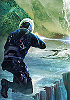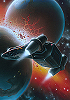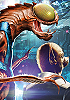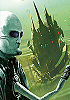 Außerirdischer mit knochigem Arm und Facettenaugen, dahinter Burg