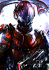 Mann mit Waffe, dessen Gesicht im Raumehlm nicht zu sehen ist