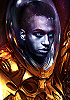 dunkelhäutiger Mann mit blau leuchtenden Augen