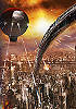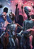 Außerirdische, dahinter Menschen mit nach oben gestreckten Armen |