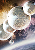 Haluter blickt zu Kugelraumschiffen am Himmel |