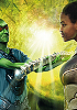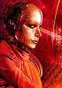 dunkelhäutige Frau und grünhäutiger Außerirdischer mit roten Augen