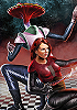 Frau sendet aus den Augen Strahlen auf rotierende Scheibe