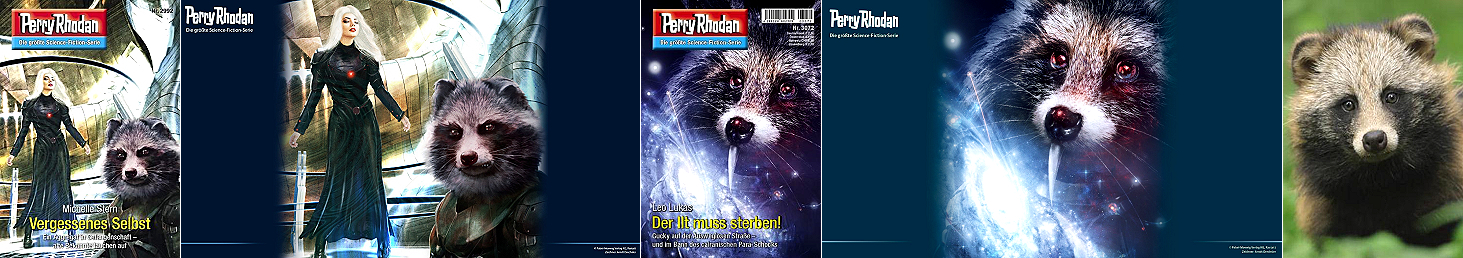 1 - 2, 3 - 4 gleiches Bild, der Zeichner machte es sich einfach und nahm ein Foto eines Marderhundes als Vorbild für Gucky |