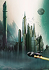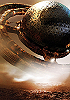 Kugelraumschiff und Kunstplanet, der in Auflösung ist |
