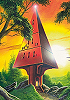 spitze Pyramide auf dünnem Sockel auf fremder Welt |