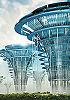 Weltraumhabitat aus mehreren Zylindern, die mit Ringen verbunden sind |