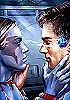 Mann und Frau mit blauer Haut schauen einander in die Augen und halten einander im Gesicht