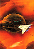 Raumschiff SOL zwischen Trümmern im Weltraum