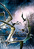 Menschen auf Hängebrücke verteidigen sich gegen Flugwesen