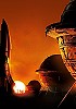 Mann blickt zu Frau, über deren Händen leuchtende Kugel schwebt