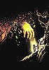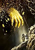Hand ragt aus bröckelndem Material heraus