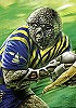 Mann im Kampf gegen radartiges Wesen mit Tentakeln