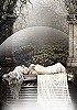 Frau liegt auf altarähnlichem Tisch