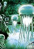 Menschen schauen auf fliegende quallenähnliche Wesen