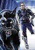 Terraner und schwarze Raumkatze (Purrer) laufen durch Korridor