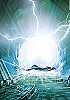 Mensch schwebt zwischen kugelblitzartigen Energieentladungen