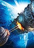 Kugelraumsc hiff beschießt Walzenraumschiff