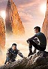 Frau im Raumanzug klettert an fast senkrechter Wand nach oben