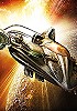 schöpfkellenariges Raumschiff vor planetarischem Nebel