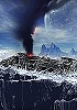 riesige kugelförmige Raumsation, bei der ein Viertel des Kugelkörpers fehlt
