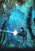 Raumfahrer wird von Metalltentakeln ergriffen