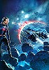 Raumfahrer im Weltraum zwischen Raumschiffstrümmern