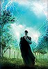 Mann steht nachdenklich zwischen Bäumen, dahinter Blitzentladungen