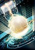 leuchtende Kugel auf rundem Podest, die von Energieblitzen umgeben ist