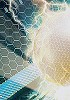 Polyederkonstruktion mit brennender Kugel in der Mitte über Wurmloch in planetarischem Nebel
