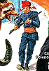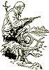 sitzender Mann mit Waffe |