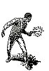 Collage mit Menschenfigur, Totenschädel, Rakete und Schlangen |