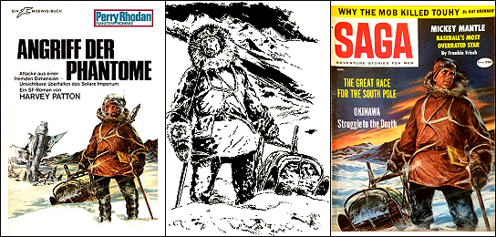 Motiv von 3 nachgezeichnet bzw. in als Collage übernommen und mit Raketenwrack ergänzt, 2 s/w und seitenverkehrt
